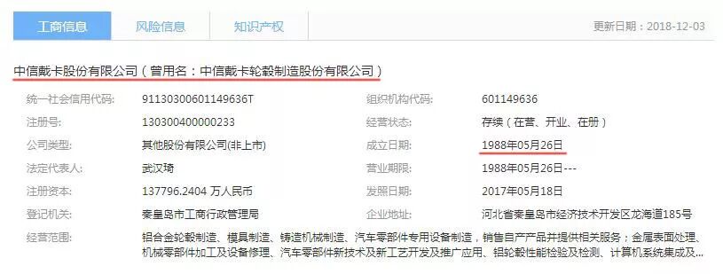 中信戴卡的爸爸就那个大名鼎鼎的世界500强企业、中国中信集团有限公司(简称“中信集团”)。在中信集团成立(1979年)的第十个年头,也就是1988年,中信戴卡股份有限公司(简称“中信戴卡”)在河北秦皇岛诞生了。