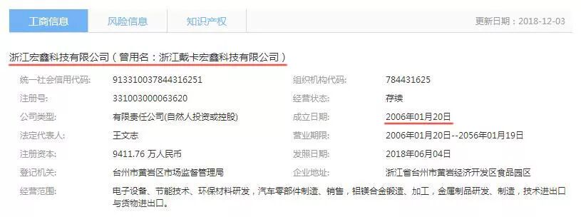 浙江戴卡宏鑫科技有限公司变更成浙江宏鑫科技有限公司